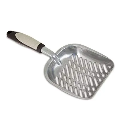 Pet Parents having a hard time handling large amounts of litter clumps with their current litter scoop? The Petmate® Metal Litter Scoop is just the scoop needed. Its slotted scoop bowl is made from heavy-duty aluminum built to withstand years of scoopings (we know, not fun). Featuring a large bowl and sharp edges to scrape off tough-to-remove waste, which makes cleaning a litter box faster and easier. The two-toned, TPR handle is pliable and has an ergonomic comfortable grip for mess-free ease of use. Cleans up easily by simply rinsing it off with water. Hanging hole for easy storage.