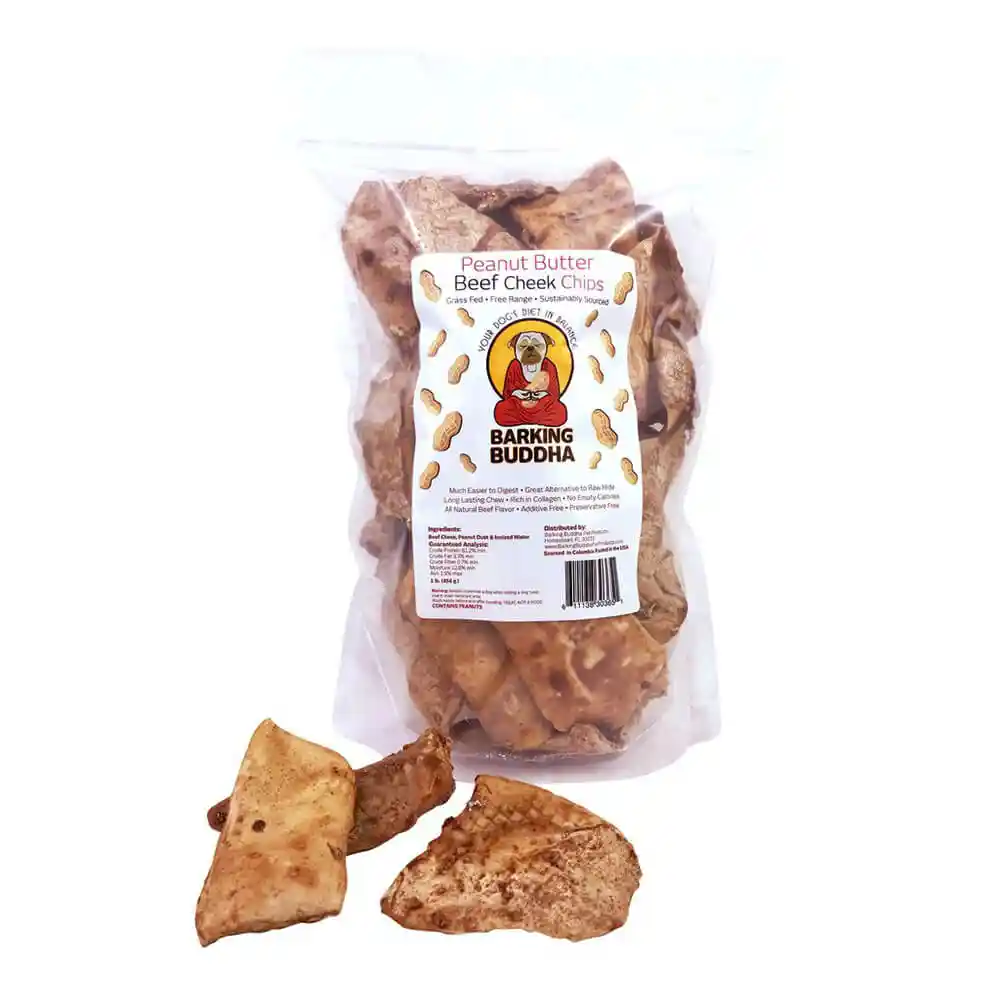 Barking Buddha Beef Cheek Chips Peanut Butter 1# Bag