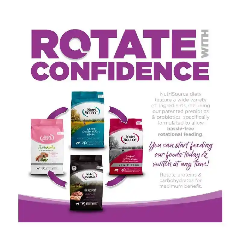 Nutrisource pet food has created the highest-quality food for your beloved pets. Nutrisource is formulated with the best ingredients and supplements that guarantee whole body health. Priority number 1 is to deliver the safest, most nutritious foods possible by examining all raw ingredients and testing every product during and after cooking. A deep rooted sense of family, community and integrity guides every decision, from the top to the bottom. With options for every dog and cat, such as large breed, small breed, seafood, beef, chicken, wet, dry, grain-free, and more, you'll know your pet is getting the very best with Nutrisource.