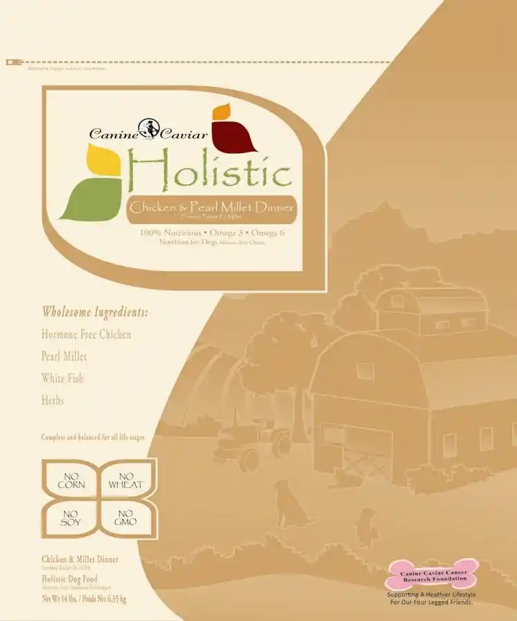 Dehydrated Chicken, Pearl Millet, Chicken Fat, Coconut, Sun-Cured Alfalfa, Coconut Oil, Whole Ground Flaxseed, Sun-Cured Kelp, Dried Lactobacillus Acidophilus Fermentation Product, Sodium Chloride, Lecithin, Choline Chloride, FOS or Fructooligosaccharide (prebiotic), Fenugreek, Peppermint, Taurine, Zinc Proteinate, Papaya, Rose Hips, Yucca Schidigera Extract, Anise Oil, Thyme Oil, Manganese Proteinate, Beta-Carotene, Vitamin D3 Supplement, Biotin, Selenium, Riboflavin, Thiamine Mononitrate, Pyridoxine Hydrochloride, Vitamin B12, Supplement, Folic Acid.