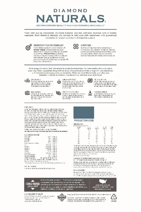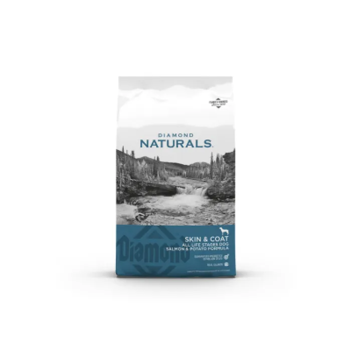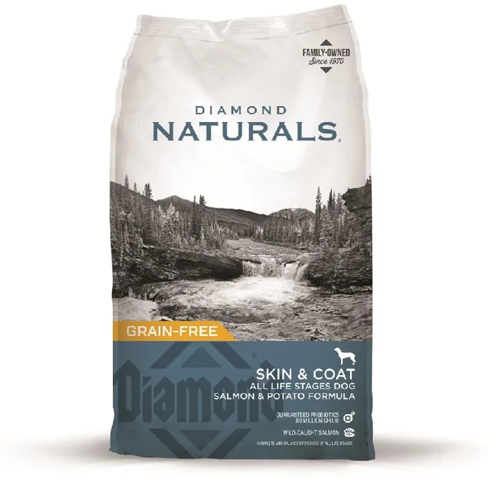 Give your sensitive pooch the complete, holistic nutrition he craves with the Diamond Naturals Skin & Coat Formula All Life Stages Grain-Free Dry Dog Food. Great for dogs that may have food-related skin sensitivities, this hypoallergenic kibble packs plenty of protein from wild-caught salmon as the first ingredient, and whole-food fruits and veggies like lentils, peas, pumpkin, blueberries and papaya. Plus, it’s loaded with guaranteed probiotics for optimal nutrition and digestive support for dogs of all sizes and ages. When you feed this formula, your dog is getting the balanced nutrition he needs to look and feel his best, with the rich salmon flavor he’ll love, bowl after bowl.