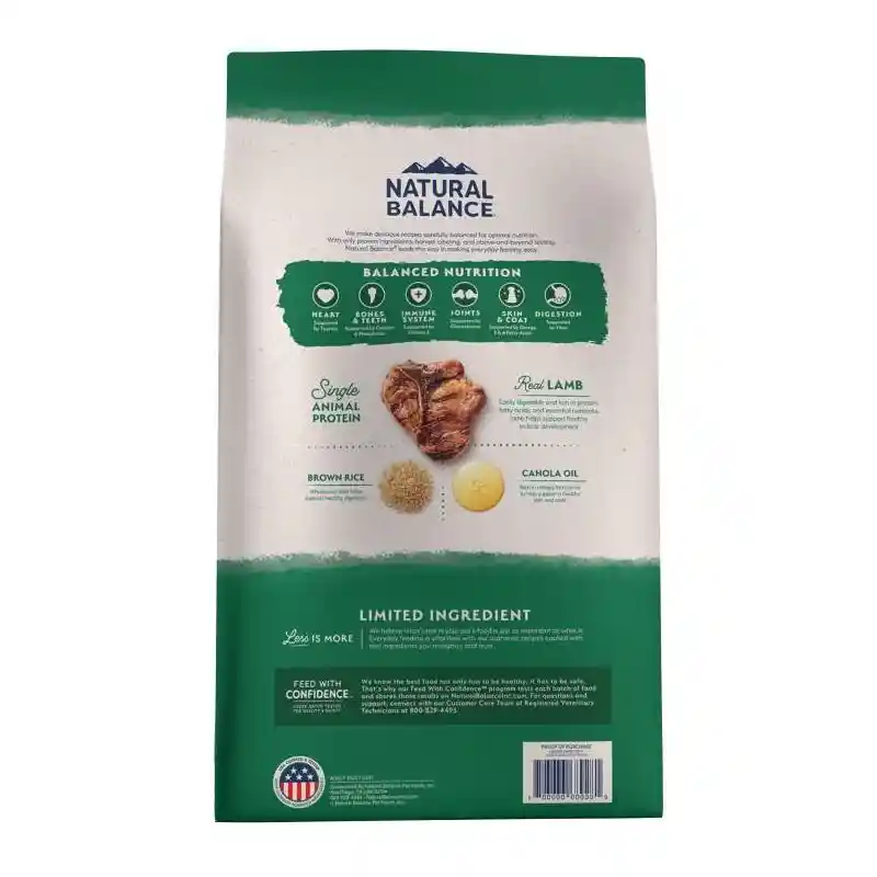 Made for adult pup's, Natural Balance L.I.D. Limited Ingredient Diets Lamb Meal and Brown Rice Dry Dog Food is packed with high quality and holistic nutrition! With very minimal ingredients, this recipe is great for those who have sensitivities or allergies to certain foods while promoting excellent skin and coat health. With fresh meat and other high quality ingredients, any pup is sure to love Natural Balance L.I.D. Limited Ingredient Diets Lamb Meal and Brown Rice Dry Dog Food!