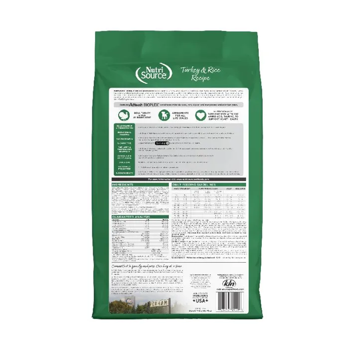 Health & happiness start in the gut – our specialty.  At family-owned NutriSource, we believe the secret to health is successful digestion and absorption of balanced nutrition.  That’s why we focus on supporting the gut microbiome with our proprietary blend of prebiotics, probiotics, trace minerals and selenium yeast. We call our gut-focused proprietary blend Good4Life because these ingredients nourish the gut microbiome, building the ultimate foundation for a long and happy life.  Scientifically formulated, chicken free, NutriSource Turkey & Rice includes a blend of turkey, rice, carefully selected ingredients, and Good4Life to provide essential nutrients for optimum health and long life.  Feed with confidence knowing that you’re part of a family that loves your pets just as much as you do.  Health begins here.