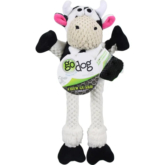 Godog Checkers Skinny Cow With Chew Guard Technology Plush Dog Toy Small