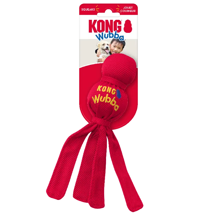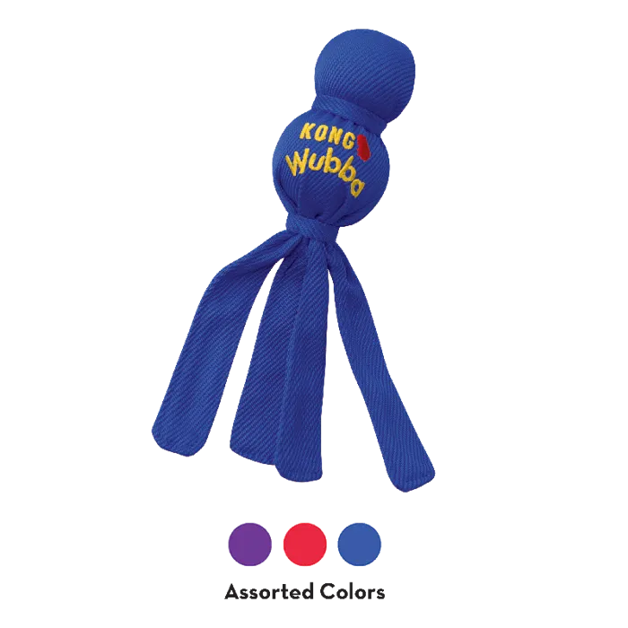 The KONG Wubba™ is a fun, interactive tug and toss toy that is great for interactive or solo play. It’s long floppy tails are ideal for shaking and tugging instincts as well as games of fetch. A durable reinforced nylon exterior comibines with unique ball shapes for play sessions that last longer. Dogs love to squeak the Wubba™ and add to the fun by shaking the flapping tails back and forth making every game different from the next.* Reinforced fabric and stitching for long lasting fun* Long floppy tails ideal for shaking and tugging instincts* Great for solo or interactive playtime* Squeaks for added engagement