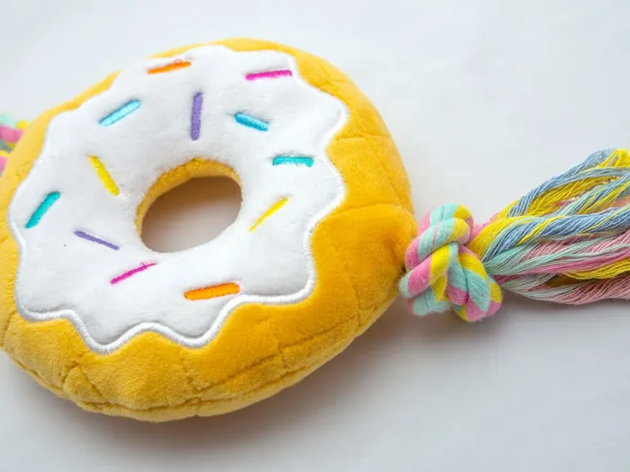 Thoozypet Birthday Donut Plush Dog Toy With Rope 12"