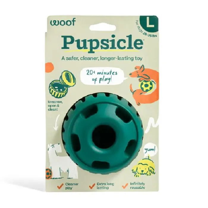 Designed in Denver, Colorado: At Woof, we create thoughtfully designed products so you can tell your dog “I love you” in a way they’ll understand. Man's best friend deserves safe, clean, and long-lasting fun, and you deserve the quiet that comes with it. The Pupsicle is a wonderful toy to keep dogs busy.