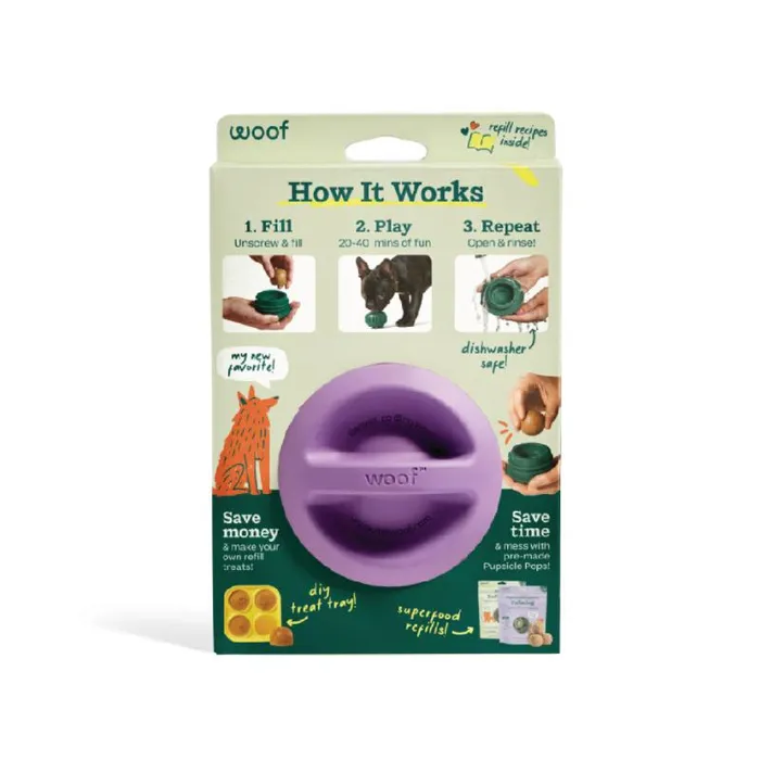 Designed in Denver, Colorado: At Woof, we create thoughtfully designed products so you can tell your dog “I love you” in a way they’ll understand. Man's best friend deserves safe, clean, and long-lasting fun, and you deserve the quiet that comes with it. The Pupsicle is a wonderful toy to keep dogs busy.