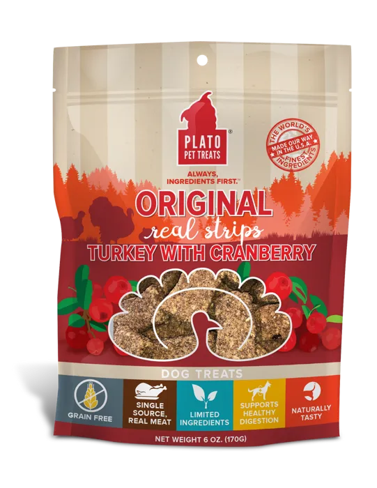 Plato Dog Strip Gf Turkey & Cranberry Treat 18 Oz