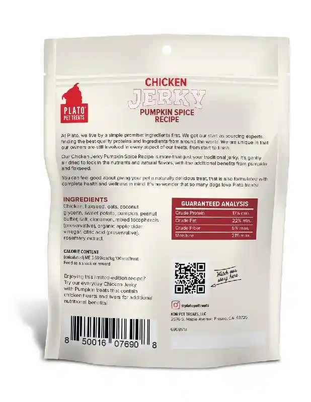 Plato Holiday Chicken Jerky Pumpkin Spice 6 Oz