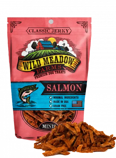 Our All-USA, Classic Jerky Salmon treats are made with high quality, minimal ingredients. These mini jerky treats are the perfect high-value treat that is ideal for training. They are small enough to not fill up your dog while being so delicious that they keep their attention.