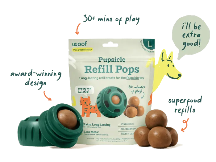 Get 30+ minutes of peace and quiet per Pop! Pups of all shapes, sizes and ages love our Pupsicle Pops. They're long-lasting, mess-free, and conveniently shelf-stable, so you can take them anywhere!