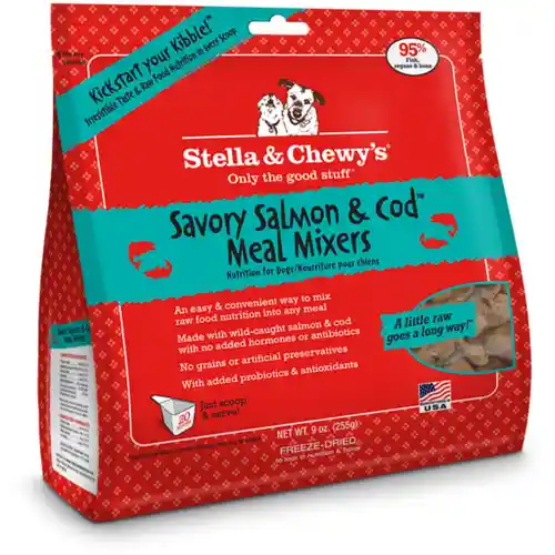 -Made in the USA - Savory Salmon & Cod Meal Mixers' all-natural recipe is crafted with care in small batches in Stella & Chewy's own USA kitchen to provide the highest levels of protein-rich meat and quality grain-free nutrition for your pet