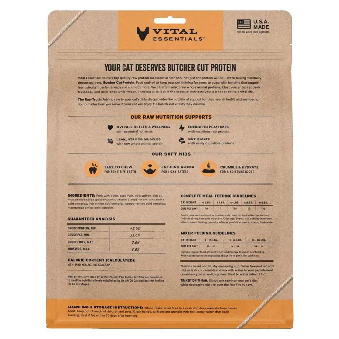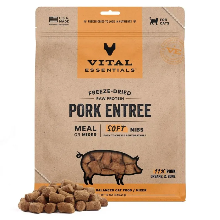 Vital Essentials Cat Fd Pork Soft Nibs 12-oz