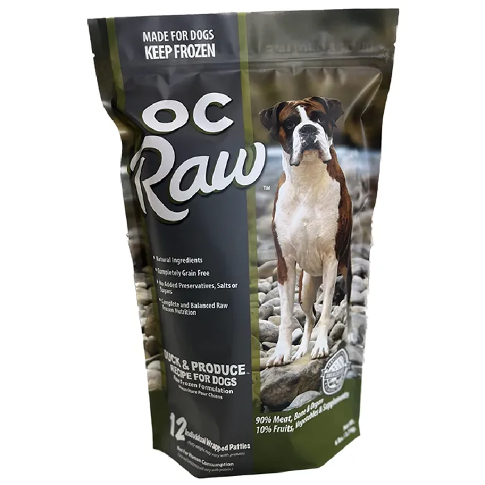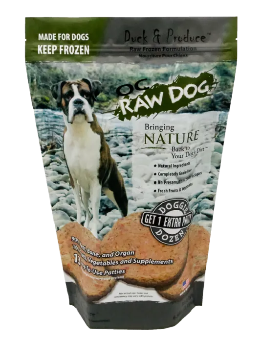 This raw duck and produce patty is a great way to get your daily dose of protein and vegetables. It is made with fresh, high-quality ingredients and is perfect for a quick and easy meal.