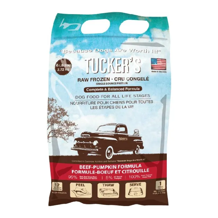 Tucker's Complete & Balanced Beef-Pumpkin Formula is formulated to meet the nutritional levels established by the AAFCO Dog Food Nutrient Profiles for All Life Stages, including growth of large size dogs (70lbs or more as an adult).