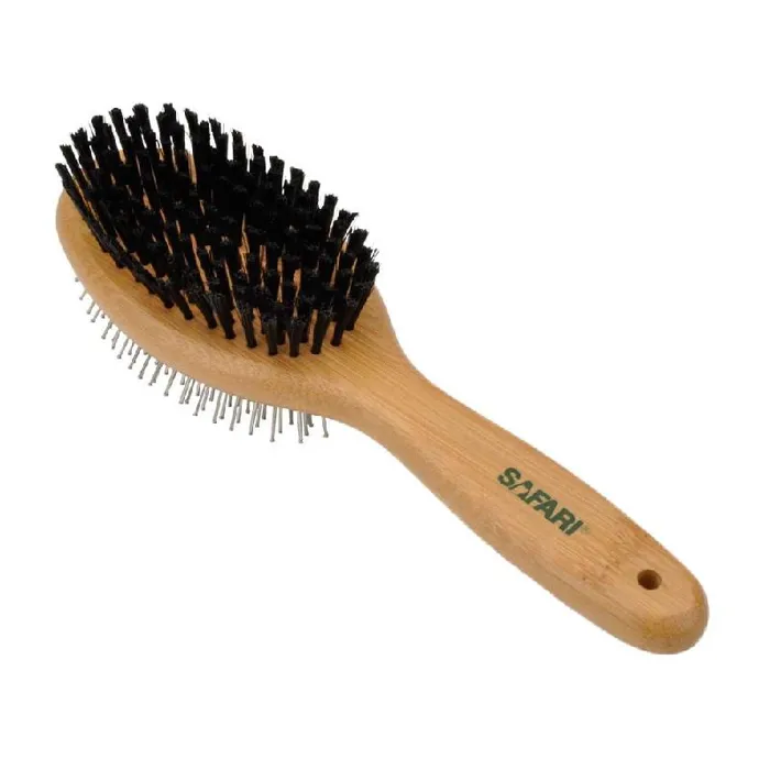 Safari pin and bristle combo dog brush with bamboo handle.