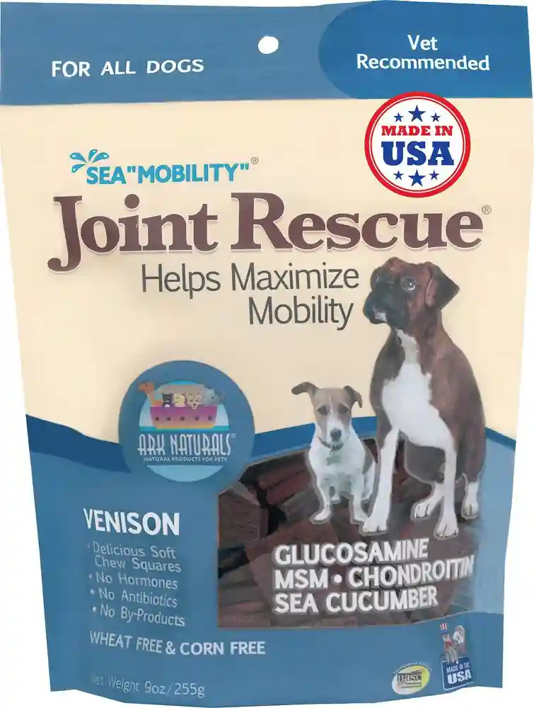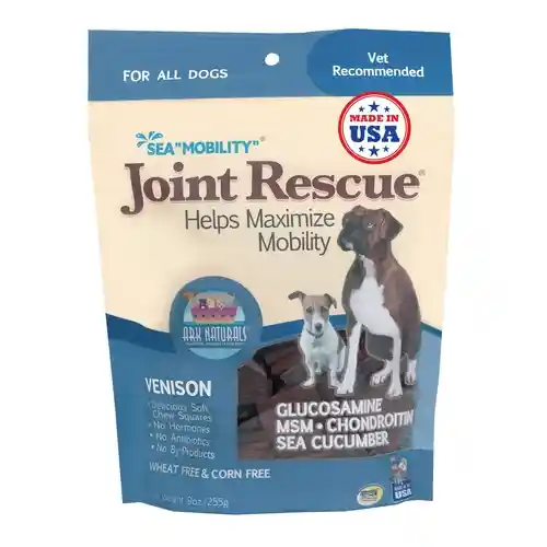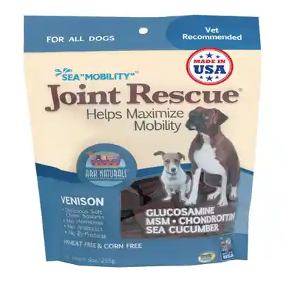 Support and protect your pets' joints with Ark Naturals Sea "Mobility" Joint Rescue, and keep your furry friend hopping! These supplements have 500mg of glucosamine and chondroitin per four delicious soft chew squares. It takes a lot of support to fetch so fast, jump so high, and pounce so quick, after all! These chews help keep hips and joints free from pain and functioning properly. Plus, they're a tasty jerky treat made with real, tasty meat so you won't have a problem treating your pet to health joints—your pup won't even know they're eating a supplement!