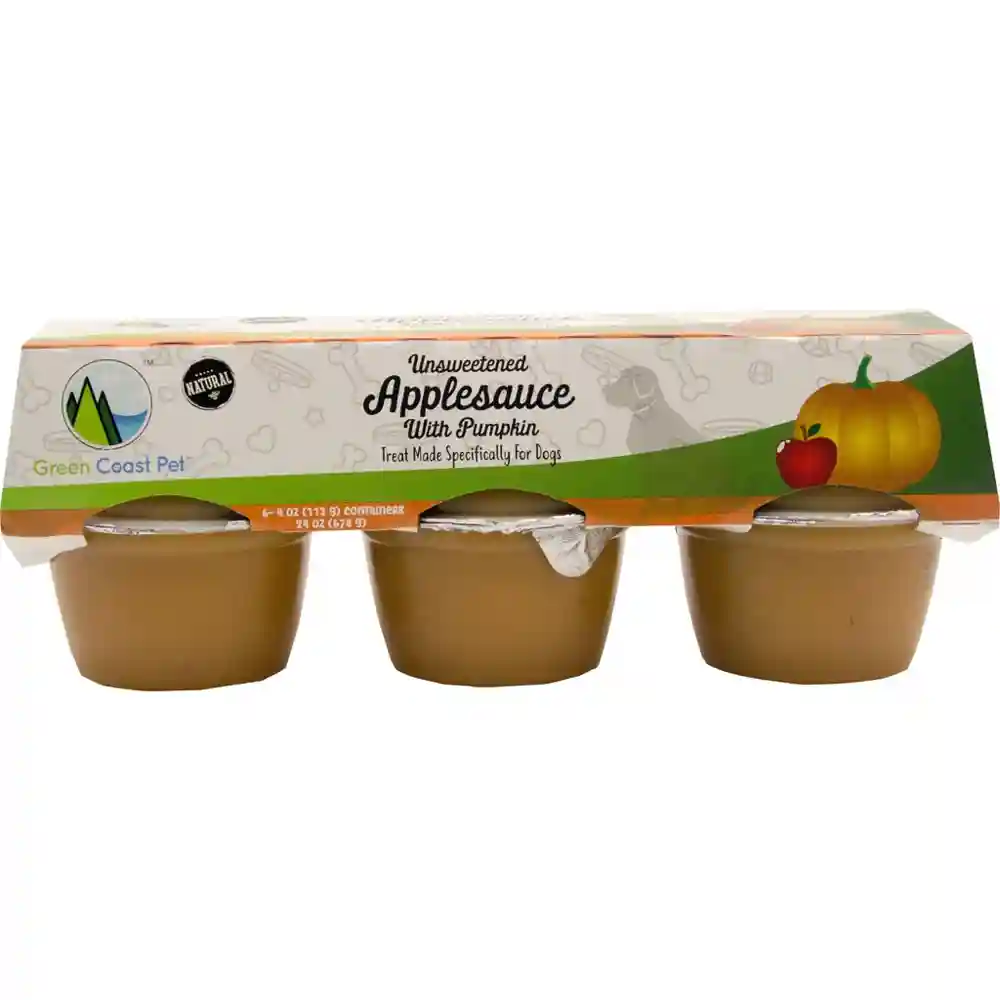 Made for those fruit lovers out there, these dog treats are individually packed and perfect for snacking on the go and we added pumpkin to this one! Made for those fruit lovers out there, these dog treats are individually packed and perfect for snacking on the go! Easy to throw in your pack for a hike or to toss in your picnic basket for a family outing. Try freezing a cup to make your dog a healthy, tasty popsicle. Our applesauce is a great low calorie option for filling toys, bones or dental chews or adding moisture to your dog's regular meal. These tasty treats are full of powerful antioxidants and dietary fiber but leave out all the unnecessary added sugar. Applesauce is a great way to help your dog with a food transition.