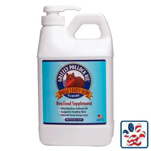 Our Grizzly Pollock Oil Dog Food Supplement is made from wild-sourced Alaskan pollock and boasts a very high content of the Omega-3 fatty acid EPA and a very low Omega-6 content—making it ideal to support a healthy skin and coat.